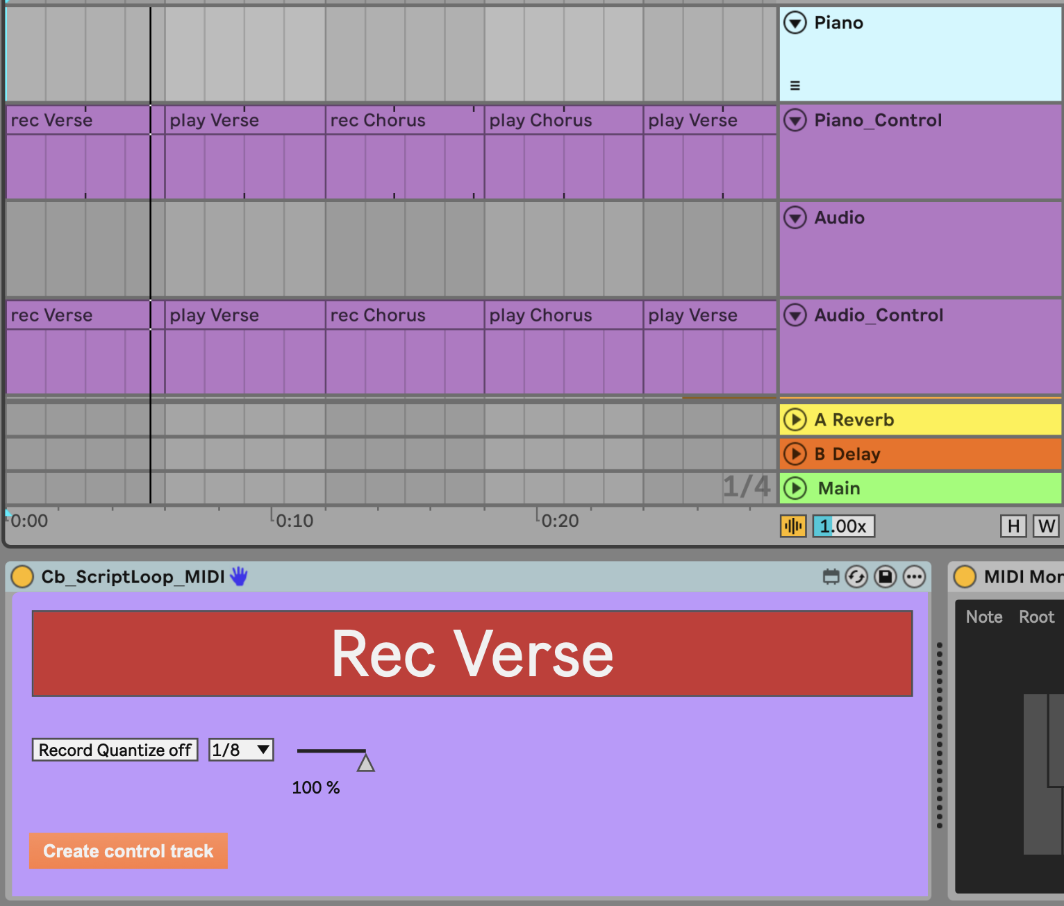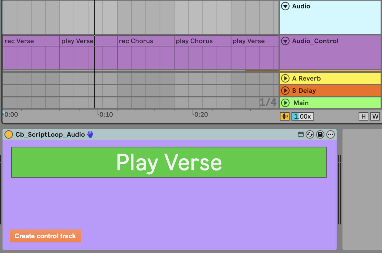 A new midi control track is required for each scripted track. Press Create control track to create the track. Or create your own track which must be named as: [track name]_Control.